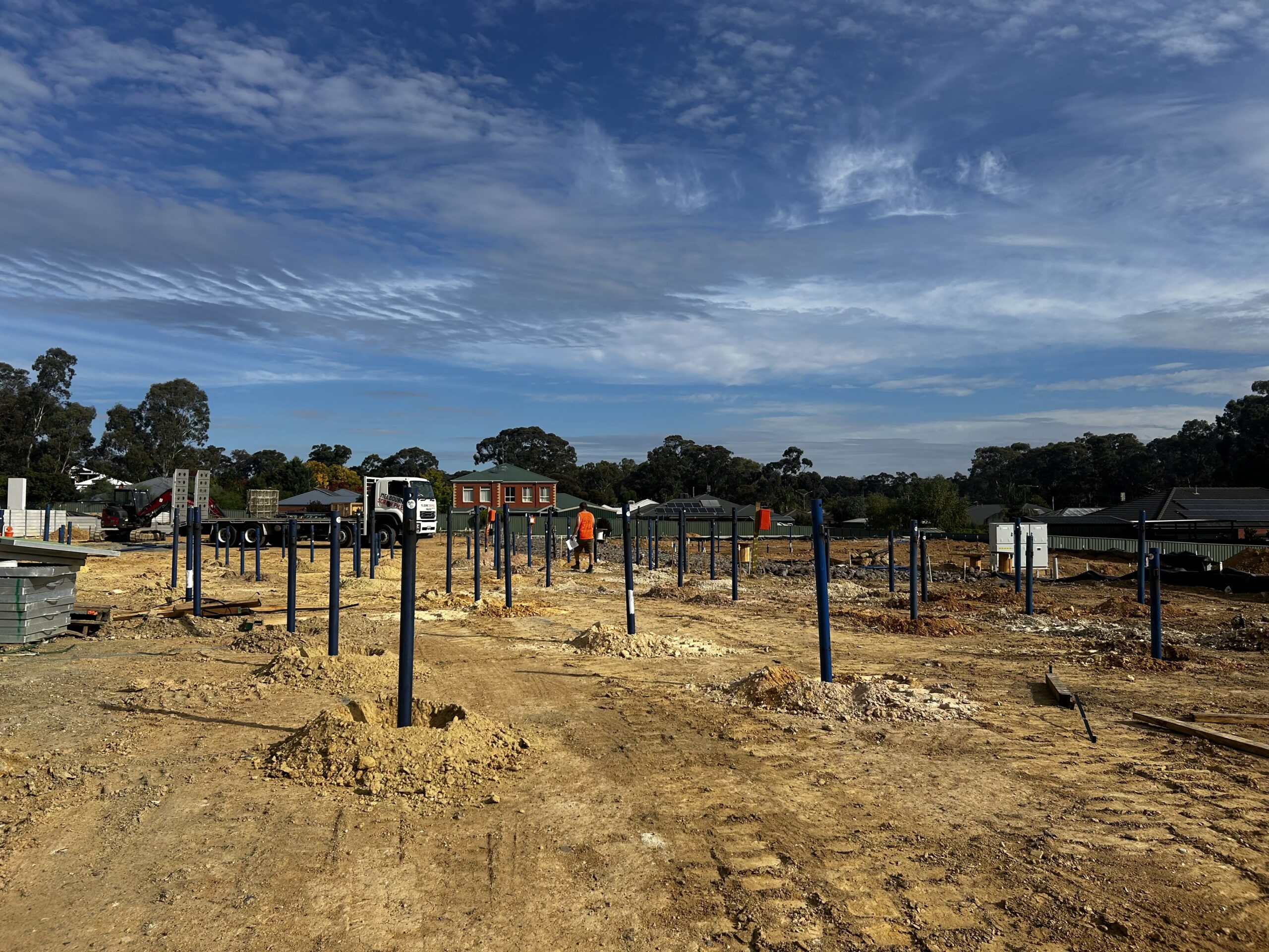 Take a look at some of our recent screw pile installations and foundation projects across Melbourne and the Mornington Peninsula. From residential builds to large commercial developments, our team delivers reliable piling solutions designed to suit each site’s soil conditions.